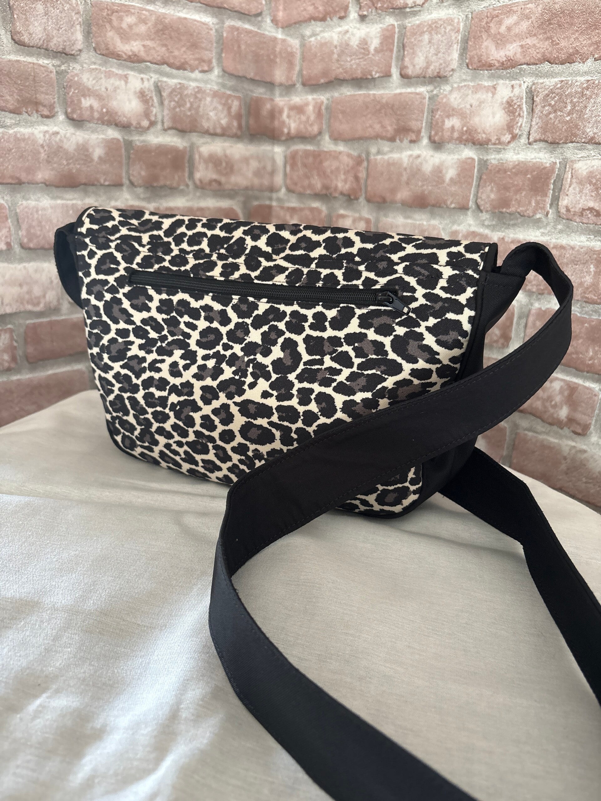 Sac besace en tissu imperméable . À porter en bandoulière. Muni d'une poche zippée arrière et deux poches intérieures Fermeture par bouton aimantée